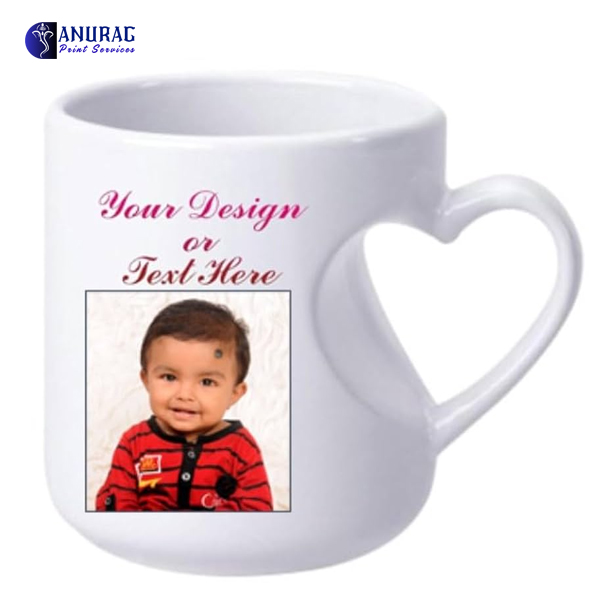 Personalized Inner Colour Photo Mug Heart Cut Handle